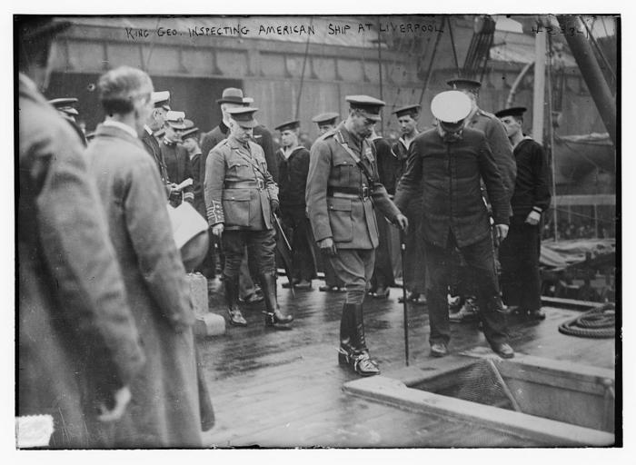 | Keywords: King Geo. inspecting American ship at Liverpool (LOC) (19331742375).jpg  Bain News Service publisher King Geo inspecting American ship at Liverpool between ca 1915 and ca 1920 1 negative glass ; 5 x 7 in or smaller Notes Title from unverified data provided by the Bain News Service on the negatives or caption cards Forms part of George Grantham Bain Collection Library of Congress Format Glass negatives Rights Info No known restrictions on publication Repository Library of Congress Prints and Photographs Division Washington D C 20540 USA http //hdl loc gov/loc pnp/pp print hdl loc gov/loc pnp/pp print General information about the Bain Collection is available at http //hdl loc gov/loc pnp/pp ggbain hdl loc gov/loc pnp/pp ggbain Higher resolution image is available Persistent URL http //hdl loc gov/loc pnp/ggbain 24632 hdl loc gov/loc pnp/ggbain 24632 Call Number LC-B2- 4239-1 https //www flickr com/photos/library_of_congress/19331742375/ King Geo inspecting American ship at Liverpool LOC LOC-image ggbain 24632 https //www flickr com/people/8623220 N02 The Library of Congress http //www loc gov/rr/print/195_copr html noknown The Library of Congress Flickr Commons PD-Bain The Library of Congress https //flickr com/photos/8623220 N02/19331742375 2016-09-08 07 53 03 pd Uncategorized 2016 December 20  |