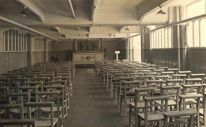 | Keywords: hospital king george military hospital kinggeorgemilitaryhospital postcards national library of medicine nationallibraryofmedicine hall room monochrome warehouse architecture auditorium Contributor(s): Zwerdling, Michael, former owner Publication: [England] : [publisher not identified], [1915] Language(s): English Format: Still image Subject(s): Hospitals, Military King George Military Hospital. Genre(s): Postcards Abstract: Black and white photograph of the interior view of a chapel in King George Military Hospital, London, England. Rows of chairs, a podium, and some religious artifacts can be seen inside the room. Sunlight shines through the room from the windows on the right side. Extent: 1 postcard : 9 x 14 cm Provenance: Purchase ; Michael Zwerdling ; 2004 ; 04-22. Technique: black and white NLM Unique ID: 101610948 NLM Image ID: D05764 Permanent Link: resource.nlm.nih.gov/101610948 Contributor(s): Zwerdling, Michael, former owner Publication: [England] : [publisher not identified], [1915] Language(s): English Format: Still image Subject(s): Hospitals, Military King George Military Hospital. Genre(s): Postcards Abstract: Black and white photograph of the interior view of a chapel in King George Military Hospital, London, England. Rows of chairs, a podium, and some religious artifacts can be seen inside the room. Sunlight shines through the room from the windows on the right side. Extent: 1 postcard : 9 x 14 cm Provenance: Purchase ; Michael Zwerdling ; 2004 ; 04-22. Technique: black and white NLM Unique ID: 101610948 NLM Image ID: D05764 Permanent Link: resource.nlm.nih.gov/101610948 |