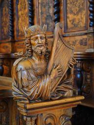 Keywords: king harp harpist holzfigur fig statue holy carved art religion sculpture fromm monk priest face