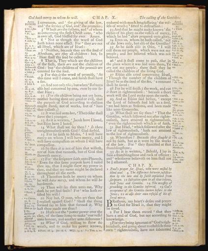 | Keywords: King James Bible 1772 - Romans 10 (1).jpg en Romans 10 1 of The Holy Bible King James version 1772 http //dohistory org/archive/doc155/155_title_img html / Massachusetts Historical Society Boston Massachusetts 1772 Oxford University Oxford England PD-old-100 King James Bible Epistle to the Romans |