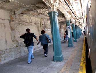 Keywords: Kings Hwy plat Seabeach BMT jeh.JPG en Looking east along en Kings Highway BMT Sea Beach Line southbound platform Own Jim henderson 2009-05-20 Kings Highway BMT Sea Beach Line