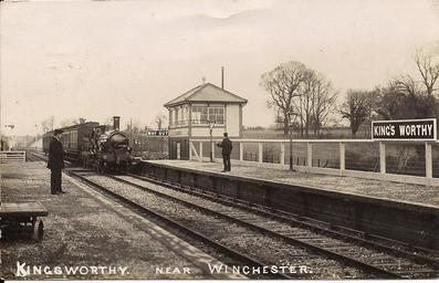 Keywords: King's Worthy railway station.jpg King's Worthy railway station Old postcard Postally used 21 September 1909 C E S Beloe Winchester PD-old-70 King's Worthy railway station Postcards of railway stations in the United Kingdom