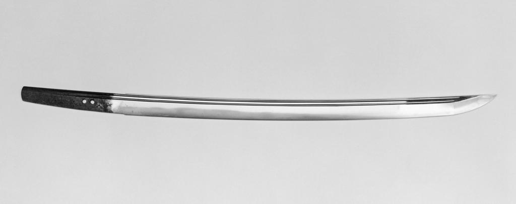 Keywords: Kinmichi II - Short Sword with Black Lacquer Saya - Walters 511261.jpg Walters Art Museum artwork Creator Kinmichi II <br/> This blade was shortened from a large tachi and appears to be a work by Tametsugu or a related smith working in the 14th century It combines elements of the Soshu and Mino styles The mounts for this blade include a black lacquer saya with polished cherry blossoms on a dull ground and an elaborate kojiri of gold and silver with crayfish and waves The piece also has a silver kurigata a gold and copper kozuka handle with a whale an inscription on the handle and blade a gold habaki and seppa a silver tsuba and fuchi a gold menuki with two carp a shibuichi and a gold kashira Ray skin and ito-maki decorate the two-handed tsuka between 1871 1873 Meiji-Nambokucho lacquer steel silver gold copper alloy ray skin shibuichi cm 55 8 accession number 51 1261 39534 Henry Walters Baltimore date and mode of acquisition unknown Walters Art Museum Henry Walters Acquired by Henry Walters Signature Takamoto Hidemune; Signature Fujiwara Kinmichi; Transcription Takamoto Hidemune/Meiji yonen Kanoto-Hitsuji nagazuki; Transcription Meiji roku tsuki/Takamoto Hidemune; Translation Meiji 6 1873 /Takamoto Hidemune; Translation Takamoto Hidemune/Meiji 4 1871 8th cycle September place of origin Edo present-day Tokyo Japan Walters Art Museum license Japanese swords and koshirae in the Walters Art Museum Wakizashi Takamoto Hidemune Kinmichi II Tametsugu |