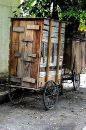 Keywords: kiosk mobile portable movable rickshaw cart vehicle wood poor transport