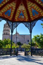 Keywords: kiosk plaza church people colonial bell tower poplars