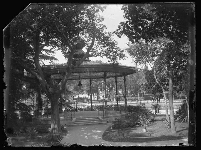 | Keywords: Kiosque du Grand-Rond - 51Fi112 - Fonds Trutat.jpg Kiosque à musique du Jardin public du Grand-Rond Vers 1881 Vue d'ensemble du kiosque Au premier plan allée bordé de parterre de fleurs et d'arbres ; au second plan escalier grilles toit ; en l'arrière plan jardin circa 1881 photograph glass cm 9 12 Institution Archives municipales de Toulouse object history ProvenanceEvent 1971 gift Association des Toulousains de Toulouse Jean Trutat ProvenanceEvent 2006-12-14 deposited Archives municipales de Toulouse Association des Toulousains de Toulouse credit line Signé dans la gélatine « H Rouzaud » 51Fi112 Fonds Eugène Trutat - Archives municipales de Toulouse PD-old-70 Grand Rond jardin Fonds Trutat - Archives municipales de Toulouse 51Fi112 Bandstands in Haute-Garonne Black and white photographs |