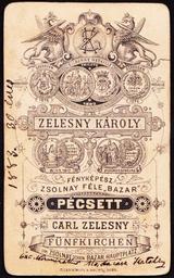 | Keywords: Király utca 1., Zsolnay féle - Fortepan 81426.jpg Check categories 2016 August 28 hu Király utca 1 Zsolnay féle Bazár Zelesny Károly fényképész Location Hungary Tags verso photographer studio Title Király utca 1 Zsolnay féle \ http //www fortepan hu/_photo/download/fortepan_81426 jpg 1900 Fortepan 81426 http //www fortepan hu/_photo/download/fortepan_81426 jpg http //www fortepan hu/ lang en img 81426 Unknown The release at fortepan hu is CC-BY-SA-3 0 As the photographer is unknown or pseudonymous and the photograph is Age 1900 01 01 years old it is considered public domain both in the country of publication Hungary and the USA where Wikimedia Commons is hosted See Fortepan HU for more information on related uploads PD-anon-70-EU PD-1923 PD-1923 DEFAULTSORT Fortepan 081426 1900 photographs Images uploaded by Fæ |