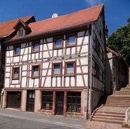 Keywords: KirchbrombachHauptstr26.JPG de Fachwerkhaus in der Hauptstraße 26 in Kirchbrombach mit der zum Kirchhof führenden Treppenanlage own Brühl 2010-07-08 Kirchbrombach Timber framing in Odenwaldkreis