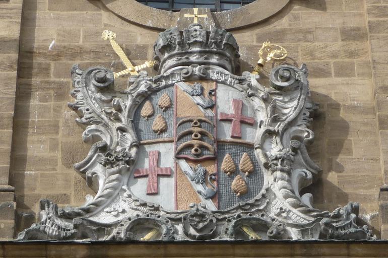 | Keywords: Kirche Buttenheim 03.jpg en St Bartholomäus Buttenheim own Immanuel Giel 2010-04 St Bartholomäus Buttenheim Franz Konrad von Stadion und Thannhausen Reliefs of coats of arms in Landkreis Bamberg Coats of arms of bishops of the Roman Catholic Archdiocese of Bamberg |