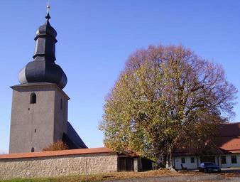 Keywords: Kirche und Linde in Hohenpoelz.jpg view of Hohenpölz part of Heiligenstadt in Oberfranken in Upper Franconia Germany own own photography 2007-10 Immanuel Giel 15 47 29 October 2007 UTC St Laurentius und Heinrich Hohenpölz