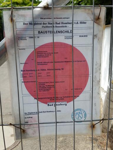 | Keywords: Kirdorf Hölderlinweg 18 2 Abrissgenehmigung.jpg de Baustellenschild an der Einfahrt zum ehemaligen Gebäude das unter Denkmalschutz stand Von Straße aus fotografiert http //www fr-online de/bad-homburg-und-hochtaunus/bad-homburg-denkmal-ohne-schutz 1472864 30653064 html 2015-05-31 own WPbilder other versions Bad Homburger Hölderlinweg 18 cc-zero Uploaded with UploadWizard Cultural heritage monuments in Kirdorf | ||||