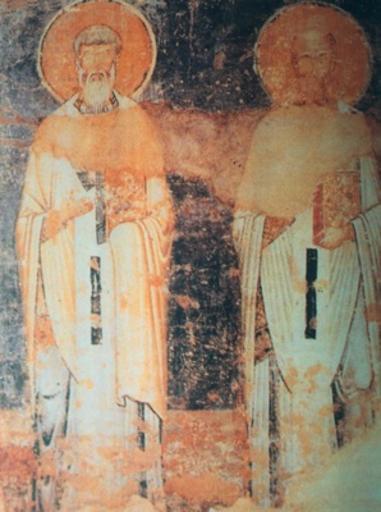 Keywords: Kiril i Kliment od Sveta Sofija.jpg ru Св Ки илл и Климент Ф еска Х ам Св Софии Ох ид Около 1045 г http //www patriarchia ru/data/459/837/1234/1IMG_04 jpg author 1045 PD-Macedonia Paintings in St Sophia Church Ohrid Frescos of Saint Cyril Frescos of Clement of Ohrid |
