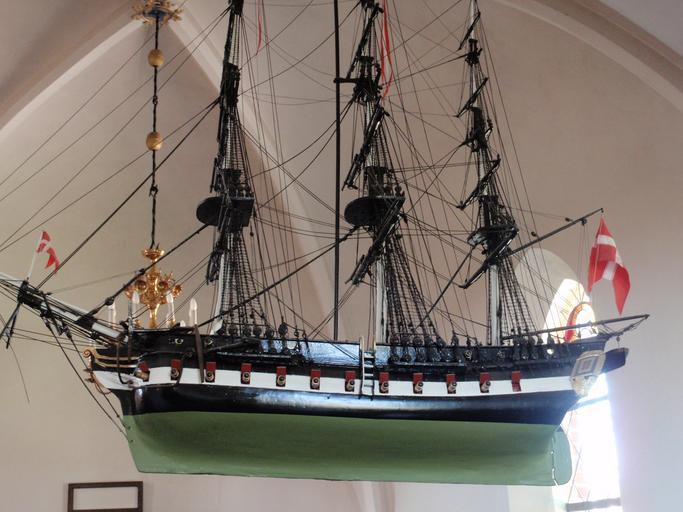Keywords: Kirkeskib Nysted Kirke 01.JPG en Model ship in Nysted Church da Kirkeskib i Nysted Kirke eget værk Erik Damskier 2011 Cc-zero Nysted Kirke kirkeskibet