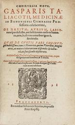 | Keywords: Kirurgen Gaspare Tagliacozzis skrift om hudtransplantationer för att återskapa näsor - Skoklosters slott - 102618.tif author Tagliacozzi Gaspare; sv Den italienske kirurgen Gaspare Tagliacozzis illustrerade skrift som redogör för metoder att utföra hudtransplantation för att återskapa näsor öron och läppar Första upplagan publicerades 1597 denna från 1598 <br/>Svinskinnsband m rik blindtr dekor pärm Verktyg rullar och plattor Enkel rambård Pärmfyllnad papp Rött snitt original caption Kirurgen Gaspare Tagliacozzis skrift om hudtransplantationer för att återskapa näsor öron och läppar 1598 <br/> Nyckelord Grafik 1500-tal Bok Föremålsbild Krigsbyte från Tyskland Glogau 1598 height Vid främre snitt 181 mm thickness Ryggen 36 mm bredare vid främre snittet width Frampärmen inkl binden 120 mm SKObok Otroligt 2015 Livrustkammaren place of origin original filename sm_dig16483 107971 inventory number SKO PB med 8 102618 PD Jens Mohr 1599 <gallery caption Different images of same object > File Bok 1598 - Skoklosters slott - 102617 tif File Kirurgi 1598 - Skoklosters slott - 102624 tif File Kirurgi nästransplantation 1598 - Skoklosters slott - 102626 tif File Sida ur bok Kirurgi nästransplantation 1598 - Skoklosters slott - 102627 tif File Kirurgi nästransplantation 1598 - Skoklosters slott - 102631 tif File Kirurgiska instrument 1500-tal - Skoklosters slott - 102620 tif File Bild ur bok Nästransplantation 1500-tal - Skoklosters slott - 102622 tif File Bok - Skoklosters slott - 102623 tif File Kirurgi nästransplantation 1598 - Skoklosters slott - 102628 tif File Bild ur bok Hudtransplation för näsa 1500-tal - Skoklosters slott - 102621 tif File Kirurgiska instrument 1500-tal - Skoklosters slott - 102619 tif File Kirurgiska instrument 1598 - Skoklosters slott - 102630 tif File Kirurgi 1598 - Skoklosters slott - 102625 tif File Kirurgiska instrument 1598 - Skoklosters slott - 102629 tif </gallery> Prints Books 16th century War trophies seized from Germany by Sweden Gasparo Tagliacozzi Jens Mohr Media contributed by LSH dim-with unformated dimensions Media contributed by LSH unmatched creator Media contributed by LSH 2015-11 |