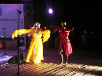| Keywords: Kist dancers.JPG Kist folk ensemble Pankisi from the Pankisi Gorge performing at the ArtGene festival Ethnographic Museum Tbilisi Georgia Own Kober 2007-07-27 Ethnographic museum Tbilisi Folk art of Georgia Kist people Kist people with chokha Dancing with chokha |