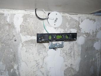 | Keywords: Kitchen air extractor start to wiring.JPG en Connecting kitchen air extractor to electricity in apartment block What problem was there - the socket was installed too close to the furniture and I can't make any cable connection to it How I solved that problem I put out the socket from a hole and put there round juncion box with diameter 65mm That way I made reservation for connecting air extractor and furniture backlight But for washing machine I put external double-socket 15cm below it's old place As you can see on photo I choose 90-degree level for external socket The same time junction box for air extractor and backlight is temporary covered to avoid getting dust inside Why external socket Cause for installing internal socket it's need to drill new hole with diameter 65 67mm but as wall is made of concrete it takes approximately 3 hours to make new hole for internal socket and lot of loud noise which may disturbs neighbours from nearest apartments For installing external socket it's need only 10 minutes and 4 small holes for screws own Dmitry G 2009-09-09 All steps of installing 1 After workers put tiles to the wall thumb left thumb <br clear all> 2 Now work is finished thumb left thumb Electrical wiring |