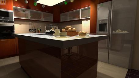 Keywords: kitchen design interior home modern architecture cook luxury decor residential table furniture stainless domestic sink 3d apartment chrome indoors metallic silver counter bar
