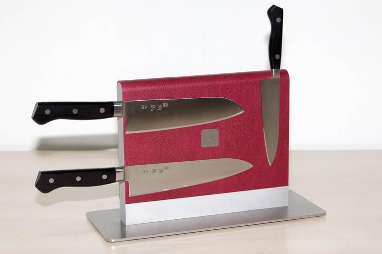 Keywords: kitchen knife block storage budget knife aluminium leather red silver kitchen utensil