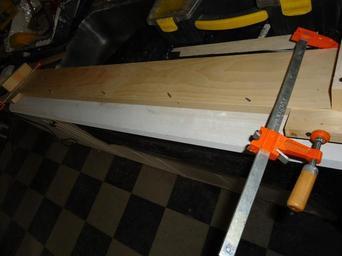 | Keywords: Kitchen renovation using clamps glue and screws to build tophat molding of window frame.JPG en It is much easier to make the top part of a window molding by attaching the pieces on a table Clamps held boards together while the glue dried 2014-03-02 22 47 32 own Tomwsulcer cc-zero Woodworking clamps Moldings Handyman photos by tom sulcer | ||||