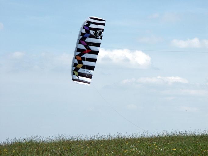 Keywords: kite fly dragon sky blue clouds meadow green idyll rest