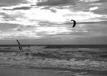 Keywords: kitesurfer kitesurfing dragons sport sea north sea sunset water sky water sports surf beach dunes summer clouds afterglow coastal protection