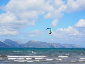 Keywords: kitesurfer sport sea wind water bay of pollensa mallorca