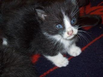 Keywords: Kitten (02) by Ron.jpg pl Kiciuś czarny z białymi łapkami Na szczególną uwagę zasługują niebieskie jeszcze nie ukrztałtowane oczka own Ron whisky 01-06-2008 Kittens Blue-eyed cats Black and white kittens