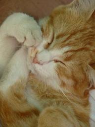 Keywords: kitten sleep feel at home cute sweet red white