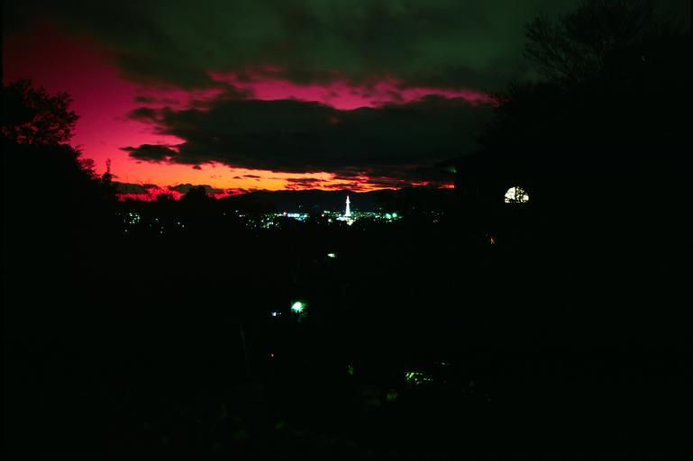 Keywords: KiyomizuderaNightViewOfKyoto.jpg Night view of Kyoto from outside Kiyomizu-dera a Buddhist temple in Kyoto Japan Night in Kyoto