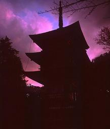 | Keywords: KiyomizuderaPagodaSilhouette.jpg Evening silhouette of three-story pagoda at Kiyomizu-dera a Buddhist temple in Kyoto Japan I took the photo and contribute my rights in the file to the public domain; individuals and organizations retain rights to images in it Three-storied Pagoda Kiyomizu-dera silhouettes of buildings |