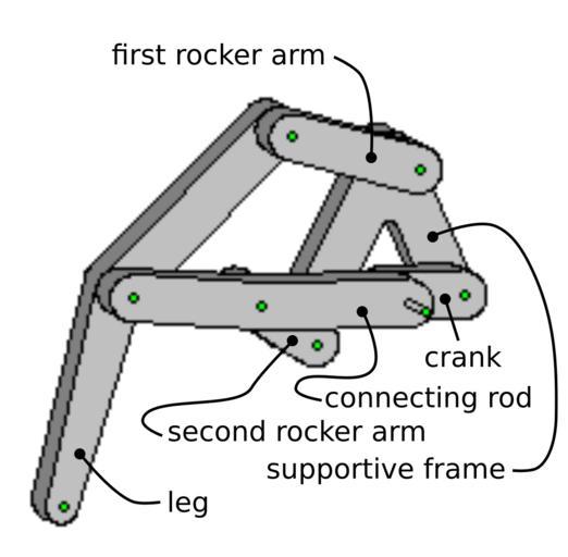 Keywords: Klann-Linkage-Nameing of the parts.svg Klann linkage - marked how the parts are named according to the patent http //www mechanicalspider com - File F1-positions gif Drawing Joseph Klann<br /> Marking MichaelFrey <span class signature-talk ></span> 2005 2014 File F1-positions gif Klann linkages |