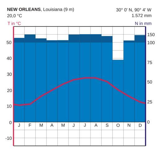Keywords: Klimadiagr New orleans.svg en Climate chart of New Orleans Louisiana de Klimadiagramm von New Orleans Louisiana own Gustavsson321 2010-08-15 Climate diagrams of the United States New Orleans Climate of New Orleans