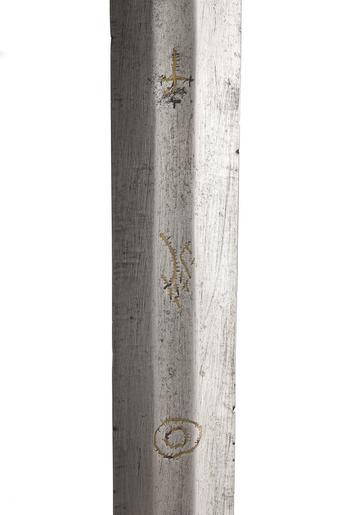 | Keywords: Klinga på bödelssvärd, 1500-tal - Livrustkammaren - 102650.tif LSH artwork sv Fäste av stål Hög fyrsidig knapp avsmalnande nedåt och med fasade hörn Raka släta parerstänger avsmalnande mot krysset och med runt tvärsnitt Kavellindning av tvinnad ståltråd upptill och nertill avslutad av krans <br/>Klinga tvåeggad bred med tvärt avskuren något bågformig ytterände Starka delen med flack hålkäl vari på båda sidor inlagt en springande ulv Passauer Wolf märke för klingsmederna i Passau samt två koncentriska ringar <br/>Ur Tidörustkammaren gåva 1858 till Livrustkammaren original caption Klinga på bödelssvärd 1500-tal <br/> Nyckelord Klinga Föremålsbild Symboler century 16 g 2040 size mm 832 klinga size mm 55 klinga size mm 1064 LRK Axel Oxenstierna af Södermöre Riddartid - sköna riddare och tappra jungfrur 2002 Otroligt 2015 Livrustkammaren place of origin DE original filename lm_dig16515 40157 inventory number LRK 3611 102650 CC-BY-SA Jens Mohr <gallery caption Different images of same object > File Bödelssvärd 1500-tal - Livrustkammaren - 102646 tif File Bödelssvärd Tyskland 1500-talet - Livrustkammaren - 789 tif File Bödelssvärd - Livrustkammaren - 102649 tif File Bödelssvärd 1500-tal - Livrustkammaren - 102644 tif </gallery> Signs blades Marks on sword blade Sword images from Livrustkammaren Jens Mohr Media contributed by LSH dim-with multiple size templates Media contributed by LSH 2015-11 Color images from Livrustkammaren |
