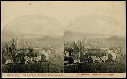 | Keywords: Knackstedt & Näther Stereoskopie 0561 Deutschland, Panorama von Bingen, Bildseite Blick vom Weinberg in Bingerbrück Stromberger Straße über St. Ruprecht u. St. Hildegard, die Nahe zur BasiliaSt. Martin.jpg Stereoskopie der Firma Knackstedt Näther mit der fortlaufenden Nummer 561 hier mit einem Blick von einem ehemaligen Weinberg an der Stromberger Straße in Bingerbrück über die Kirche St Ruprecht St Hildegard und den Rhein-Zufluss Nahe in Richtung der Basilika St Martin in Bingen Das auf Lichtdruck spezialisierte hamburger Unternehmen auch K N hatte für ihre stereographischen Ansichtskarten die DRGM-Nummern 83768 und 92395 eintragen lassen Diese Karte wurde dankenswerterweise von Ilse Paul zur Verfügung gestellt um sie als hochaufgelöstes Digitalisat über Wikimedia Commons nachhaltig allen Menschen zur Verfügung zu stellen Scan vom Original Bernd Schwabe in Hannover mit Dank an Ilse Paul ~ 1900 noch unidentifizierter Fotograf; Verlag Knackstedt Näther <gallery> File Knackstedt Näther Stereoskopie 0561 Deutschland Panorama von Bingen Adresseite der Postkarte mit sogenannter ungeteilter Rückseite um 1900 jpg Ungeteilte Rückseite der als Ansichtskarte vertriebenen Stereoskopie </gallery> PD-old Documents by Ilse Paul Knackstedt Näther stereo cards Basilika St Martin Bingen Bingerbrück Views of Bingen am Rhein Bingen in art Stereo cards of Bingen am Rhein Postcards of Bingen am Rhein |
