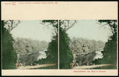 | Keywords: Knackstedt & Näther Stereoskopie 0881 Deutschland, Am Wall in Bremen, Bildseite handkoloriert, Personengruppe in den zum öffentlichen Park umgewandelten Bremer Wallanlagen, um 1900.jpg Handkolorierte Stereoskopie der Firma Knackstedt Näther mit der fortlaufenden Nummer 881 hier mit einem Blick über die zum öffentlichen Park umgewandelten Bremer Wallanlagen Das auf Lichtdruck spezialisierte hamburger Unternehmen auch K N hatte für ihre stereographischen Ansichtskarten die DRGM-Nummern 83768 und 92395 eintragen lassen Diese Karte wurde dankenswerterweise von Ilse Paul zur Verfügung gestellt um sie als Digitalisat über Wikimedia Commons nachhaltig allen Menschen zur Verfügung zu stellen Scan vom Original Bernd Schwabe mit Dank an Ilse Paul ~ 1900 noch unidentifizierter Stereo-Fotograf Vertrieb über Knackstedt Näther <gallery> File Knackstedt Näther Stereoskopie 0881 Deutschland Am Wall in Bremen Adressseite ungeteilte Anschriftenseite der Post-Karte Ansichtskarte jpg Ungeteilte Rückseite der als Ansichtskarte vertriebenen Stereoskopie </gallery> PD-old Documents by Ilse Paul Knackstedt Näther stereo cards Stereo cards of Bremen Postcards of Bremen Wallanlagen Bremen Am Wall Bremen |