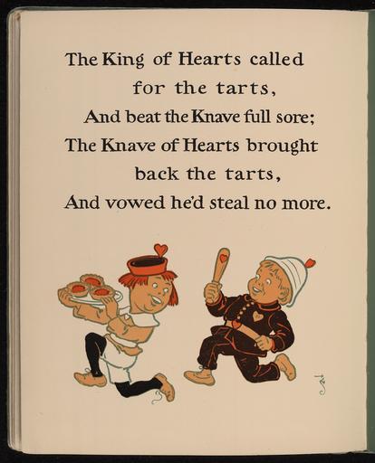 Keywords: Knave of Hearts Mother Goose.jpg The Knave of Hearts from a 1901 edition of Mother Goose Library of Congresshttp //lcweb2 loc gov/cgi-bin/ampage collId rbc3 fileName rbc0001_2003goudy25765page db recNum 55 1901http //catalog loc gov/cgi-bin/Pwebrecon cgi DB local CNT 20 CMD k010+01025765 Creator William Wallace Denslow Unrestored version of File Knave of Hearts Mother Goose2 jpg See also File Knave of Hearts Mother Goose1 tif partial restoration and File Knave of Hearts Mother Goose2 tif full restoration uncompressed PD-old-90 PD-1923 William Wallace Denslow The Queen of Hearts poem |