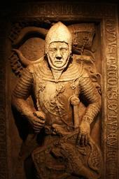 Keywords: knight middle ages grave stone latin armor helm metal weapons swords relief plate coat of arms lion shield symbol past death face cemetery brown portrait memory