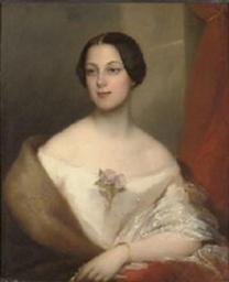 | Keywords: KnightPortraitLot132.jpg en Catalogue entry lot 132 English School 19th Century Portrait of a young lady of the Knight family half-length in a white dress with fur stole a golden locket in her left hand oil on canvas 28¾ x 24 in 73 x 61 cm Sold with 4 other Knight family portraits lots 132-136 property of Sebright Educational Trust Probably the wife or a daughter of Sir Frederic Winn Knight d 1897 Christie's South Kensington Catalogue sale 5343 Jan 2008 lot 132 http //www christies com/lotfinder/paintings/english-school-19th-century-portrait-of-a-5029428-details aspx pos 5 intObjectID 5029428 sid page 12 Unknown artist 19th c Simonsbath PD-old-100 Images from Christie's |