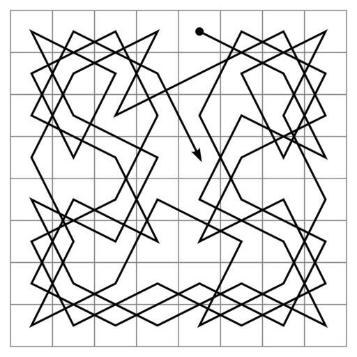 Keywords: Knight's tour.svg An example of a Knight's tour in Chess Created by Ilmari Karonen using <code>chesstour-svg pl e8 g7 h5 f6 e4 g3 h1 f2 d1 b2 a4 c3 d5 b6 a8 c7 b5 a7 c8 d6 c4 a3 b1 d2 f1 h2 g4 e3 f5 h6 g8 e7 c6 d8 b7 a5 b3 a1 c2 d4 f3 e1 g2 h4 g6 h8 f7 g5 h7 f8 e6 f4 h3 g1 e2 c1 a2 b4 d3 c5 a6 b8 d7 e5</code> based on Image Knights tour png by Gdr 20 December 2006 original upload date Created by Ilmari Karonen thumb left 100px Animated w GIF GIF version thumb left 100px Animated w SVG SVG version Other fields U + Knight's Tours |