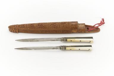 Keywords: Knivar med fodral, 1600-1625 - Skoklosters slott - 102844.tif LSH artwork sv Montering av silver ev av stål 15 mm lång stämpel Slida av trä rikt prydd med skurna figurer och scener ur bibeln Inskrifter över varje bild och två längre sådana på ena sidan DIENT GOD ENDE WILT HEM VRESEN EN SPREECKT VOOR WEDVVEN EN WESEN på den andra WAER GHI SIT V SELVEN WEL KENT WAT GHI DOET DENCKT OP HET ENT <br/>På bladet märken i inslaget silver <br/>1600-talets början original caption Knivar med fodral 1600-1625 <br/> Nyckelord Knivar Föremålsbild 1600-tal - 1600 1625 size mm 210 size mm 215 SKO Barockfesten 2015 Skoklosters slott place of origin original filename sm_dig14738 21688 inventory number SKO 325 102844 CC-BY-SA Erik Lernestål <gallery caption Different images of same object > File Knivslida av trä prydd med figurer och scener ur bibeln - Skoklosters slott - 93247 tif </gallery> 17th century Knives Erik Lernestål Media contributed by LSH dim-with multiple size templates Media contributed by LSH 2015-11 |