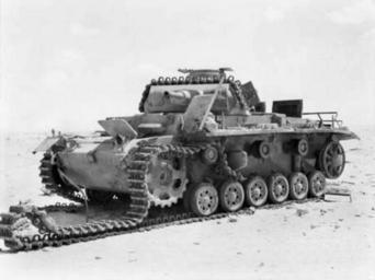 | Keywords: Knocked out Panzer III near El Alamein 1942.jpg A knocked out German Panzer III in the Western Desert 025006 1942-09-16 Australian armed forces Image copyright Copyright expired - public domain frame cropped PD-Australia Panzerkampfwagen III during World War II Afrika Korps First Battle of El Alamein Black and white photographs |