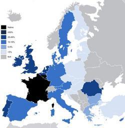 | Keywords: Knowledge of French EU map.svg en Knowledge French to a conversational level other than as a mother tongue in the European Union according to Special Eurobarometer 243 of the European Commission with the title Europeans and their Languages http //ec europa eu/public_opinion/archives/ebs/ebs_243_en pdf black Native 162d50 ‰¥50 144187 20-49 3771c8 10-19 87aade 5-9 d7e3f4 <5 bfc0c3 N/A Image EU27-2008 European Union map svg Addicted04 2009-10-17 <gallery> File Knowledge French EU map-fr svg </gallery> Linguistic maps of the French language Demographics of the European Union |