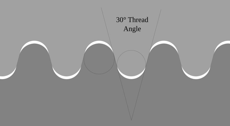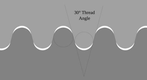 | Keywords: Knuckle Thread Form.svg Uploaded with en wp UW marker 2014 01 14 This is a cross section through a knuckle thread This thread form has very rounded tips illustrated by the circles at the thread tip and clearance at the thread root There is also a flat area with a 30 degree thread angle Specifically this is modeled from a DIN 20400 Rd300x16 thread It demonstrates that when interior and exterior threads mate the enlarged pitch diameter of this thread form leaves substantial room at the tips for deformation or debris Prepared in Inkscape from public DIN thread data 2014-01-13 Olawlor cc-zero Knuckle threads Cross sections |