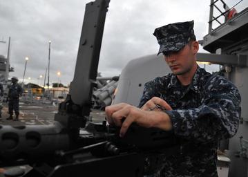 | Keywords: Koa Kai 14-1 140125-N-IT566-005.jpg en Gunner's Mate 2nd Class David Ellis checks the head spacing and timing on a 50-caliber machine gun before the guided-missle cruiser USS Lake Erie CG70 gets underway from Pearl Harbor to participate in exercise Koa Kai 14-1 in waters near Hawaii Koa Kai is the primary integrated training event for Middle Pacific Surface Combatant MPSC units with the goal of achieving deployment certifications and training U S Navy photo by Mass Communication Specialist 1st Class David Kolmel/Released 2014-01-25 Petty Officer 2nd Class David Kolmel https //www dvidshub net/image/1156520 140125-N-IT566-005 2014-01-27 11 17 PEARL HARBOR HI US PD-USGov-Military-Navy Aboard USS Lake Erie CG-70 Images from DoD uploaded by Fæ |
