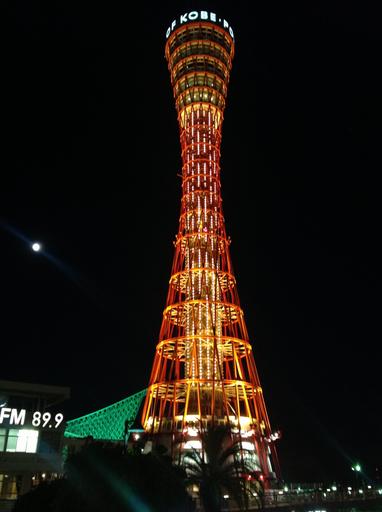 Keywords: kobe tower night view moon in the evening atmosphere osaka kobe city night view of kobe