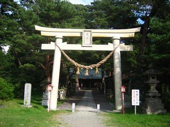 | Keywords: Kobirakata Shrine Entrance.JPG A picture of Kobirakata Shrine's Torii at Tenjin Beach on Lake Inawashiro Photo taken in Inawashiro Fukushima Prefecture Japan Picture was taken with a Canon Power Shot SD450 Digital Elph camera and modified using a Paint Shop program on a laptop computer Own 2007-09-22 BrianAdler Kobiragata Tenman-gū Stone torii |