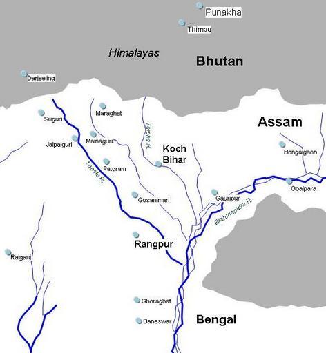 Keywords: Koch Bihar Sketch Map.jpg en Sketch map of Koch Bihar and surroundings to illustrate article on the history of the princely state own Aymatth2 2008-10-22 Maps of Assam Cooch Behar Maps of rivers of India Maps of the history of West Bengal