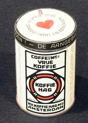 | Keywords: Koffie Hag bus, foto 1.JPG Very old packaging of a Dutch product that is not produced and not sold any more Photographed at a collector of Droste For info see http //www tincollectors nl/ tincollectors nl or email info tincollectors nl own 2014-04-11 09 26 32 Alf van Beem CC-Zero Trademarked Coffee tins |