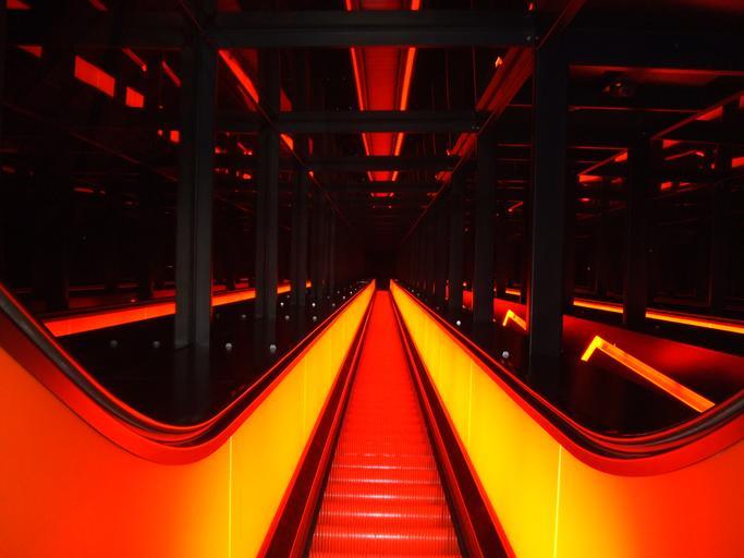 Keywords: Kohlenwäsche.JPG en Escalator to the Kohlenwäsche exhibition at night de Aufgang zu Ausstellungsräumen Kohlenwäsche bei Nacht own original text Eigene 1 Freia 74 2011-09-22 51 29 12 N 7 2 39 E de <br/> Lage Zeche Zollverein Gemarkung Stoppenberg Gemeinde Essen Bundesland Nordrhein-Westfalen Staat Deutschland Revier Ruhrrevier Cc-zero Escalators Night in Essen Linear perspective Red and yellow light |