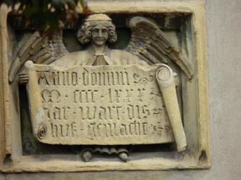 | Keywords: Koïfhus - Construction en 1480 (Colmar).JPG fr Ange tenant un parchemin mentionnant la date de construction de l'édifice own Gzen92 2014-09-21 48 4 32 8 N 7 21 31 5 E region FR_heading NNE Cc-zero DEFAULTSORT Colmar Koifhus Gothic reliefs in Alsace Sandstone reliefs in Haut-Rhin Reliefs in Colmar Reliefs of angels in Alsace Latin inscriptions in Haut-Rhin Photographs of Colmar by Gzen92 | ||||